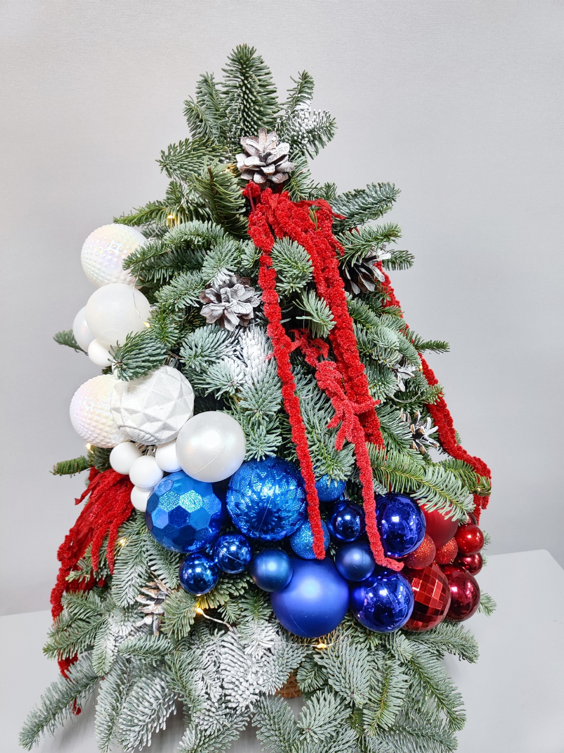 К любой еловой композиции или ёлочке можно добавить гирлянду, что подчеркнет красоту хвои и добавит композиции праздничного блеска, можете указать при заказе (+400 руб)