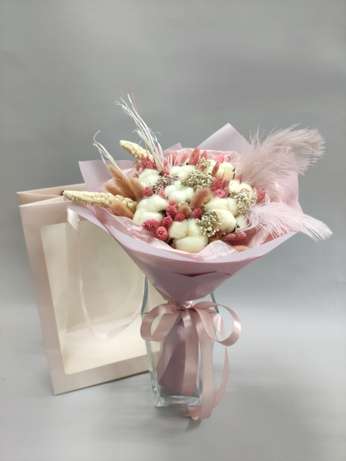 Букет из сухоцветов и стабилизированных растений, будет интересным подарком, интерьерным акцентом или чудесным дополнением к основному подарку. Сухоцветы и стабилизированные растения сохраняют свой вид годами, не портятся, не нуждаются в уходе, выглядят очень стильно и всегда можно подобрать оттенок подходящий конкретно под ваши пожелания.