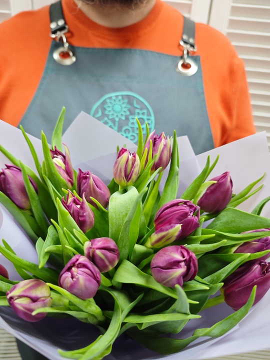 Букет из 15 пионовидных тюльпанов сорта Purple Peony.