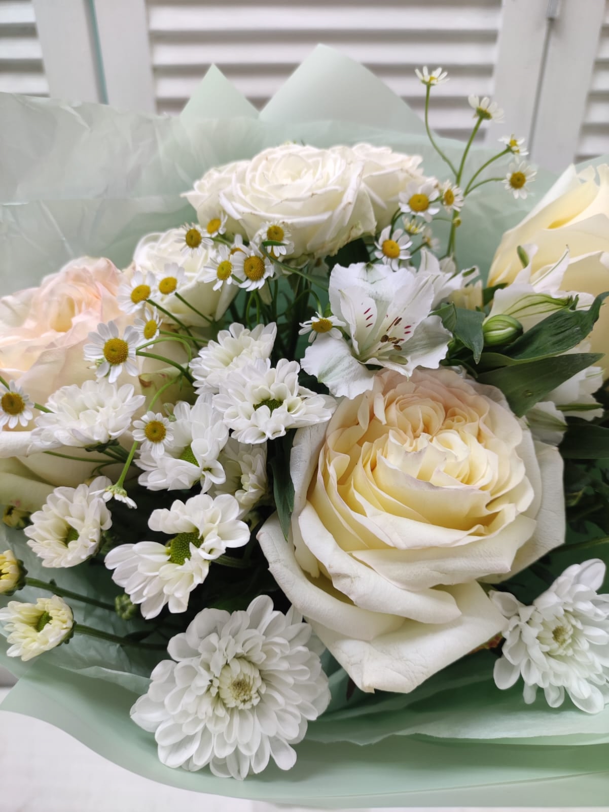 По вашему запросу мы можем прислать фотографию готовой цветочной композиции или букета.