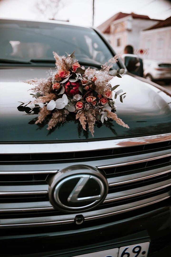 Букет невесты с протеей, кустовыми розами, сухоцветами и зеленью эвкалипта.