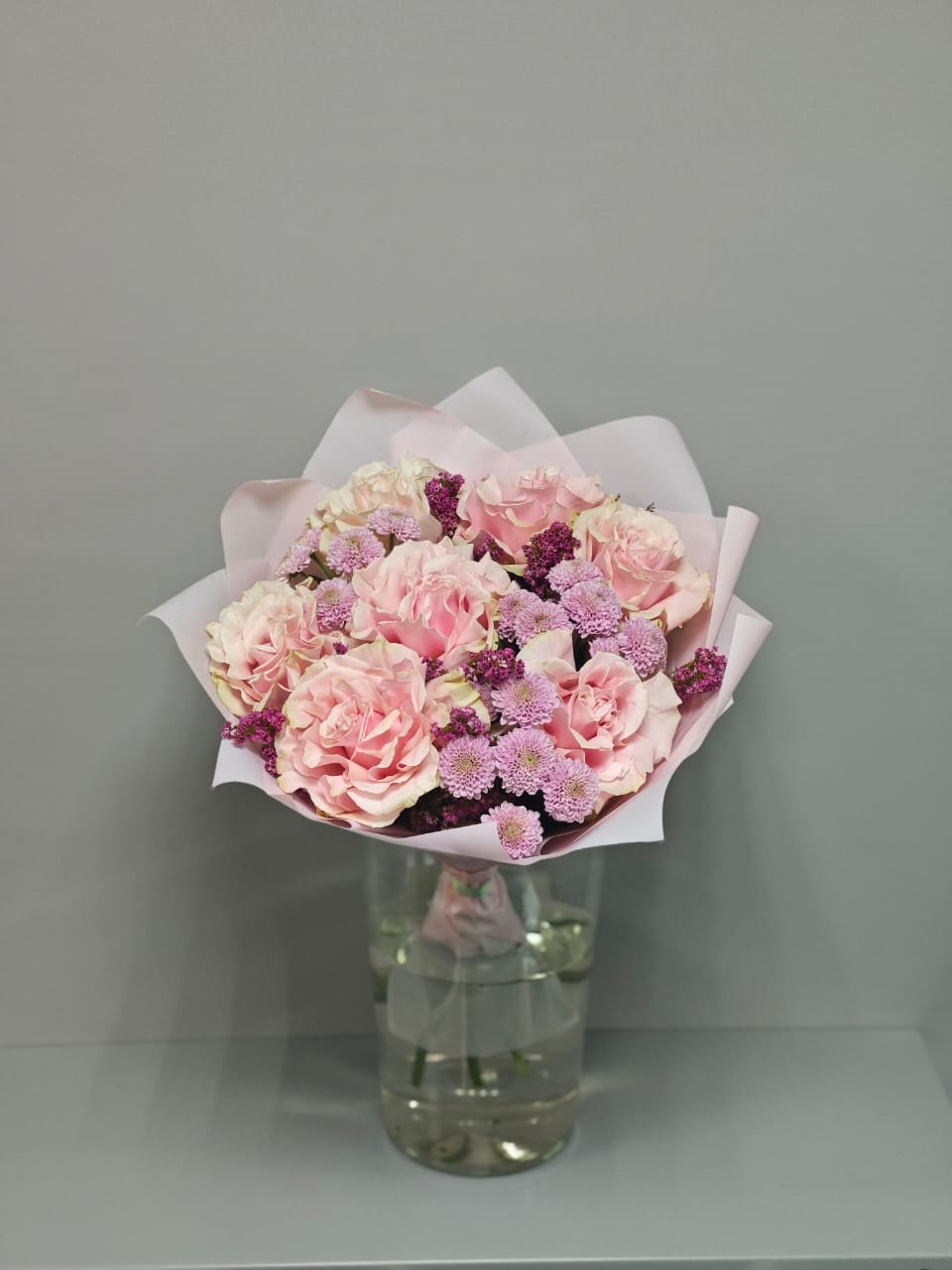 По вашему запросу мы можем прислать фотографию готовой цветочной композиции или букета.